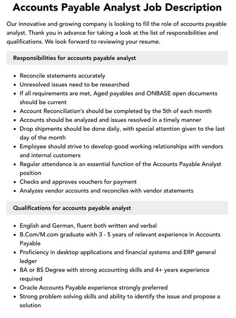 Just see the accounts payable analyst opening work on of the month at this accounts payable analyst. Best of luck!