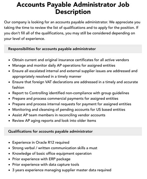 Hi whomever, are you trying to find a job right now? This information about accounts payable administrator occupation opening. This job opening is aimed for anybody who fulfill the quality takes.